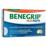 Benegrip Multi Noite com 20 Comprimidos - Hypera Pharma é ideal para aliviar os sintomas da gripe e do resfriado durante a noite, proporcionando uma noite de sono tranquila e reparadora. Sua fórmula combina ativos que combatem a febre, dores no corpo, dor de cabeça e congestão nasal, ajudando você a descansar melhor enquanto o corpo se recupera. Perfeito para quem busca alívio completo dos sintomas gripais noturnos com a qualidade e confiança de Benegrip.