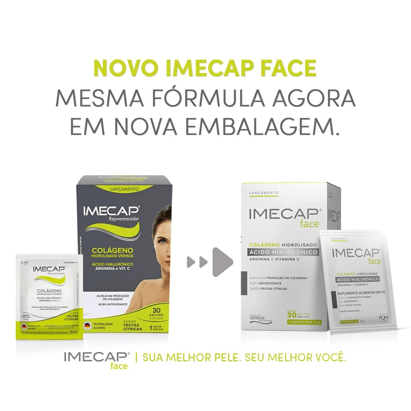 O Imecap Rejuvenecedor Colágeno 30 Sachês – FQM é um suplemento alimentar que atua de dentro para fora, estimulando a produção natural de colágeno no organismo. Sua fórmula exclusiva com colágeno hidrolisado Verisol, ácido hialurônico, arginina, vitaminas e minerais auxilia na firmeza, elasticidade e hidratação da pele, contribuindo para reduzir rugas e linhas de expressão.