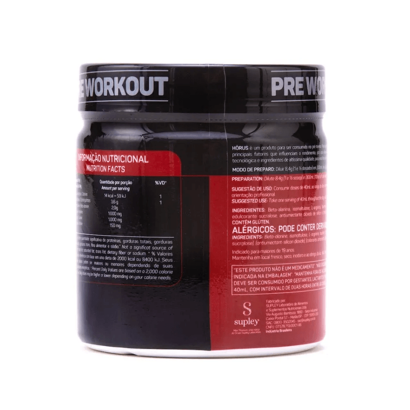O Pré-treino Workout Hórus foi desenvolvido para quem busca mais energia, foco e desempenho nos treinos. Sua fórmula concentrada auxilia no aumento da disposição, melhora da força e intensifica a performance, ajudando você a alcançar resultados superiores. Com 150g, o produto rende diversas doses e é ideal para quem quer potencializar cada sessão de treino com mais intensidade e foco.