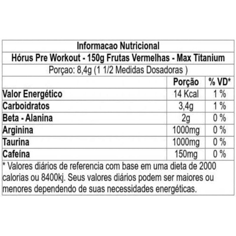 Pré Workout Hórus Suplemento Alimentar 150g - Max titanium