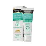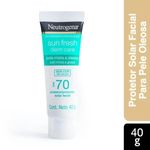 O Protetor Solar Facial Neutrogena Sun Fresh FPS 70 é um protetor solar desenvolvido especialmente para peles oleosas. Sua fórmula com textura ultraleve e toque seco controla a oleosidade por até 12 horas, proporcionando efeito matte de longa duração. Enriquecido com complexo antioxidante rejuvenescedor com Vitamina C, Niacinamida e Feverfew, ajuda a combater os sinais do envelhecimento causados pelo sol, mantendo a pele protegida, sequinha e com aparência saudável.